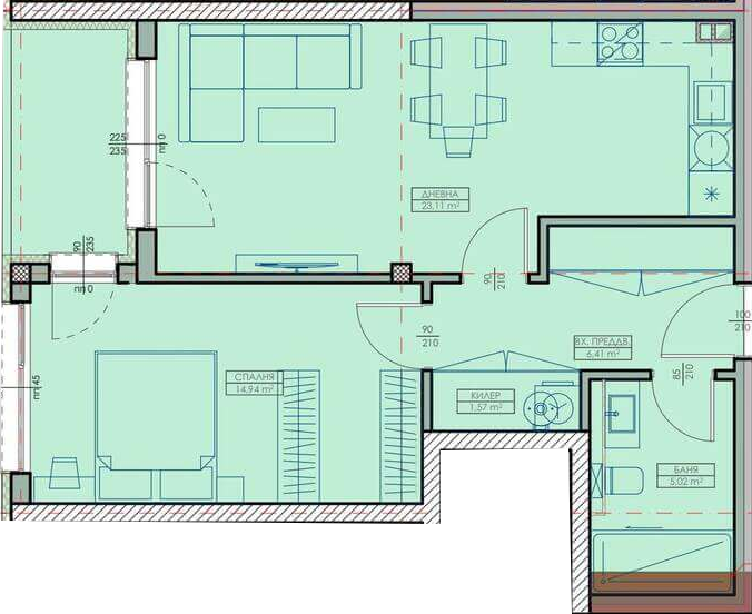 Апартамент – Дневна с кухненски бокс, спалня, баня с тоалетна, килер, входно преддверие и лоджия